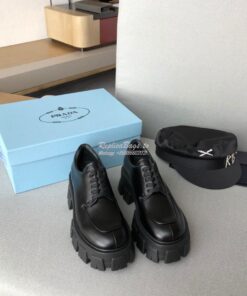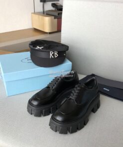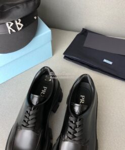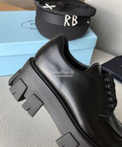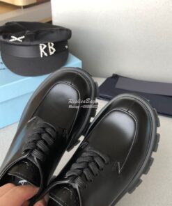 Replica Prada Monolith Brushed Leather Lace-Up Shoes 1E708L Black