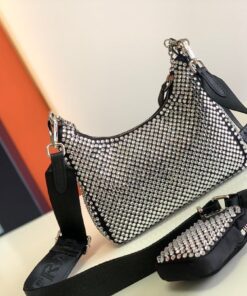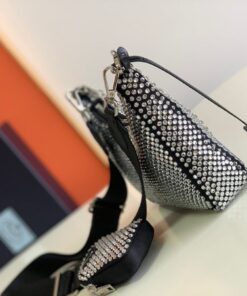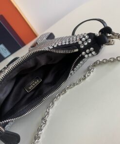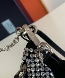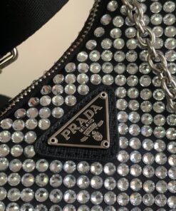 Replica Prada Re-Edition 2005 Bag In Aqua Satin with Crystals