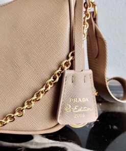 Replica Prada Re-Edition 2005 Shoulder Bag In Beige Saffiano Leather