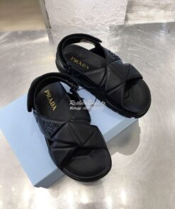 Replica Prada Sporty Quilted Nappa Leather Sandals 1X599M Black