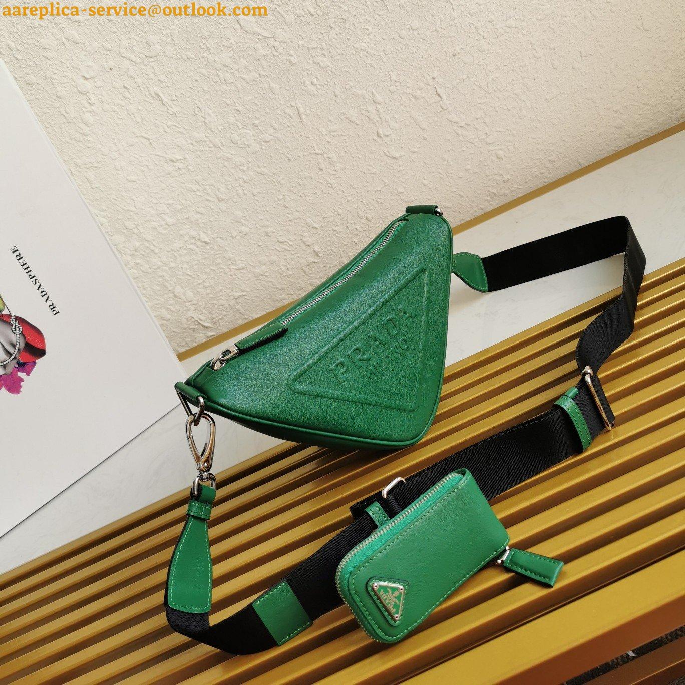 Replica Prada Triangle Shoulder Bag In Green Calfskin